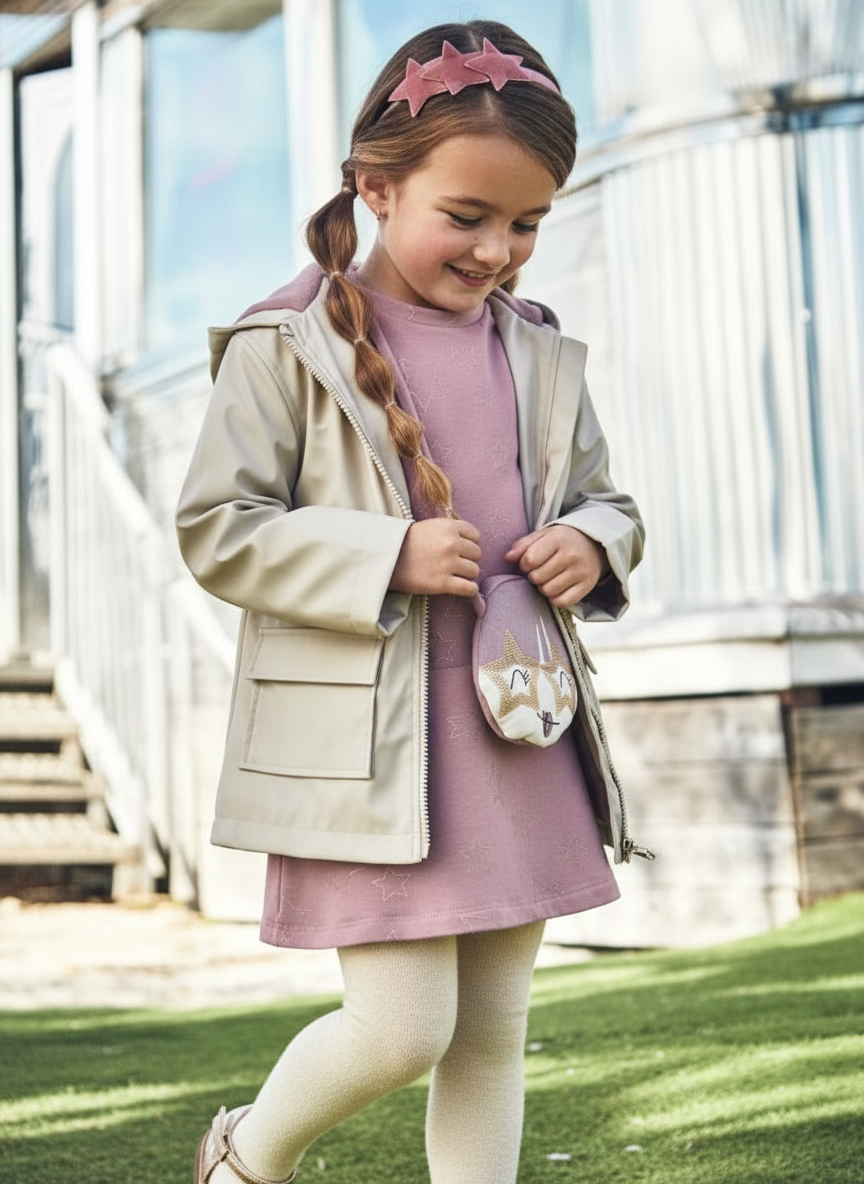 Long sleeve dress for girls. Soft stretch cotton fabric. Decorative elements: pattern on the front, glitter.