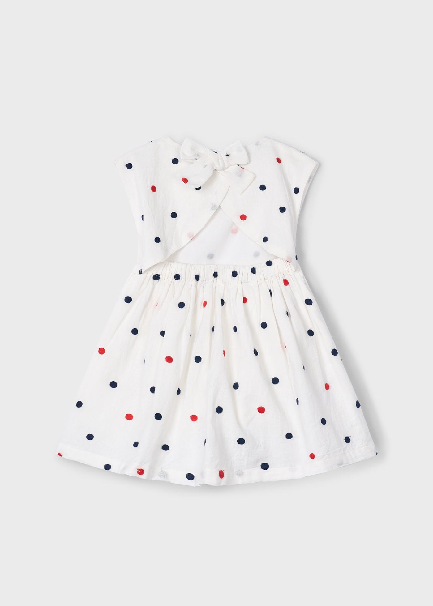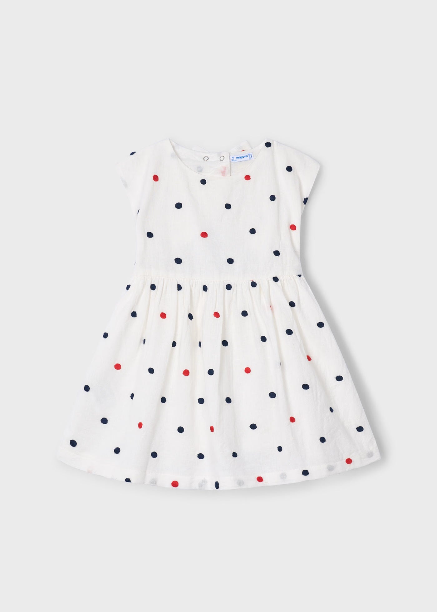 Vestito panna bambina Mayoral ricami pois rosso e blu marino
