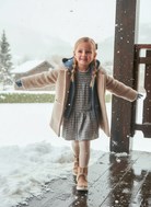 Long sleeve dress for girls. Soft stretch cotton fabric. Decorative elements: pattern on the front, glitter.