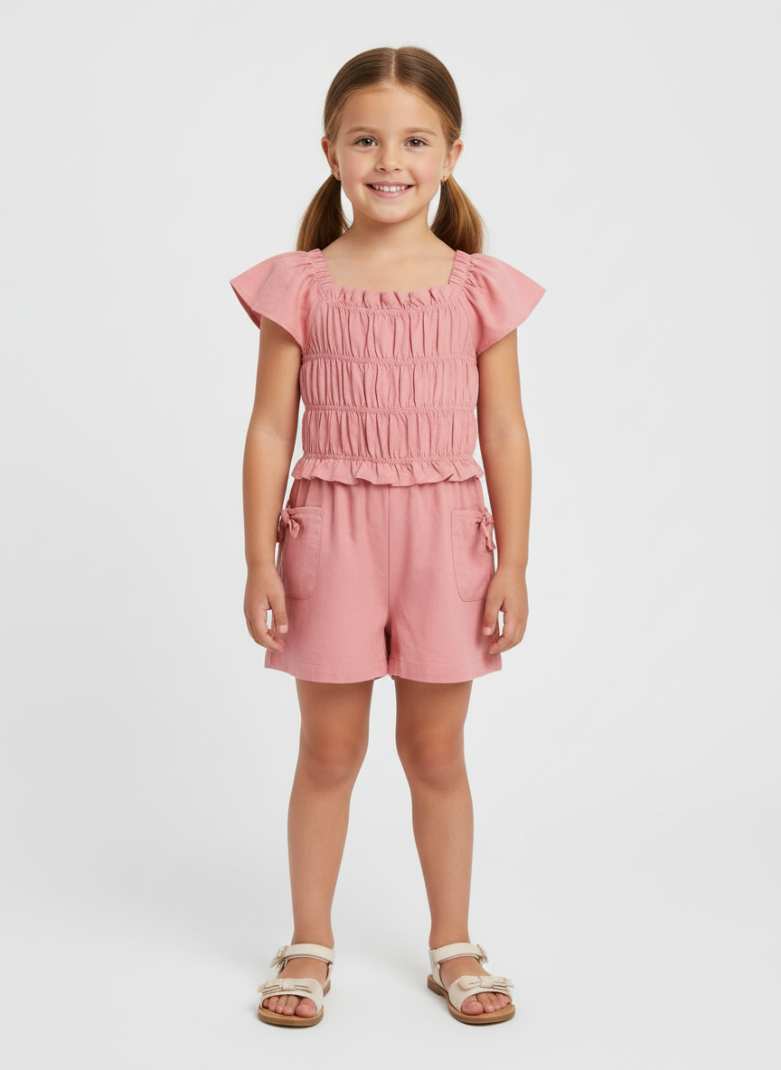 T-shirt volant traforata bambina Mayoral rosa peonia