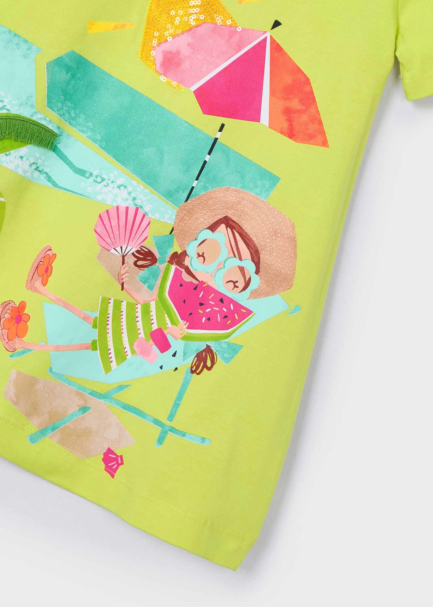 T-Shirt volant chiffon bambina Mayoral rosa orchidea