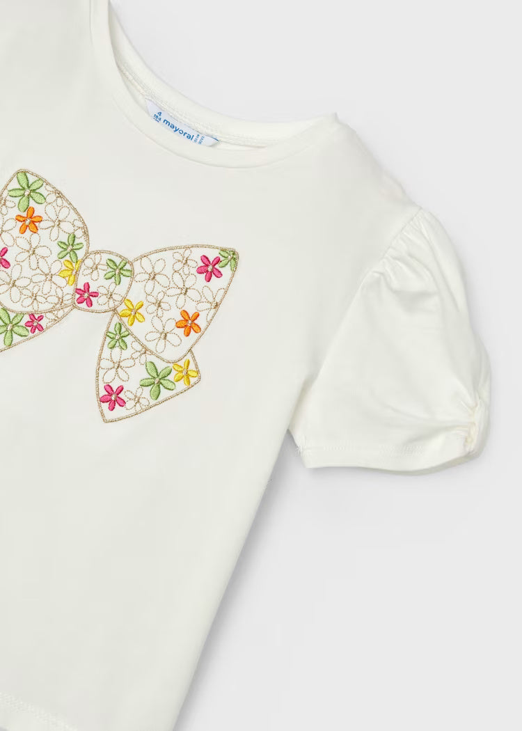 Mayoral white printed short sleeve blouse for girls