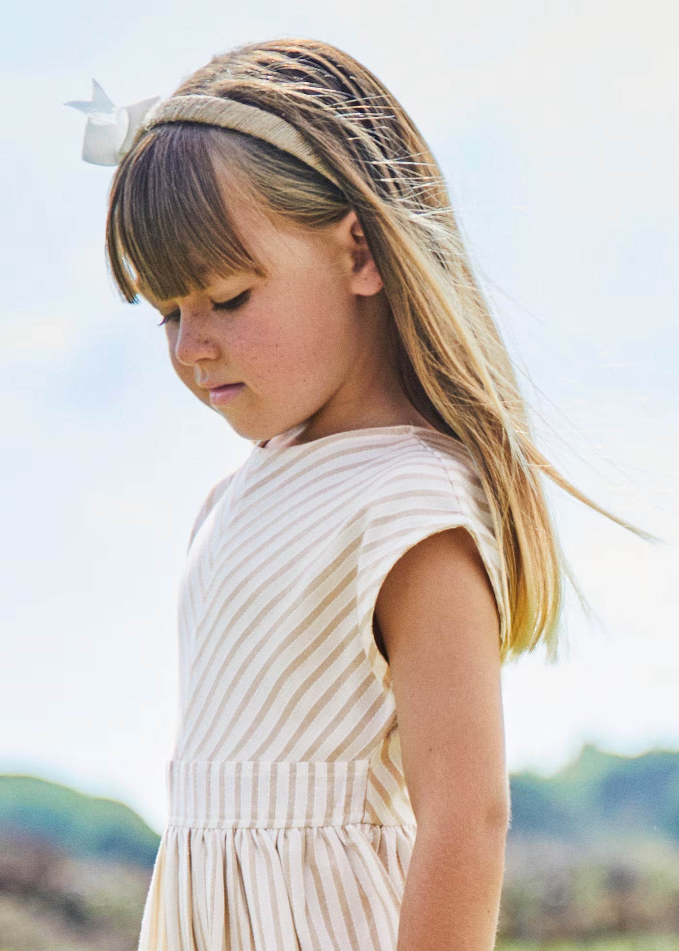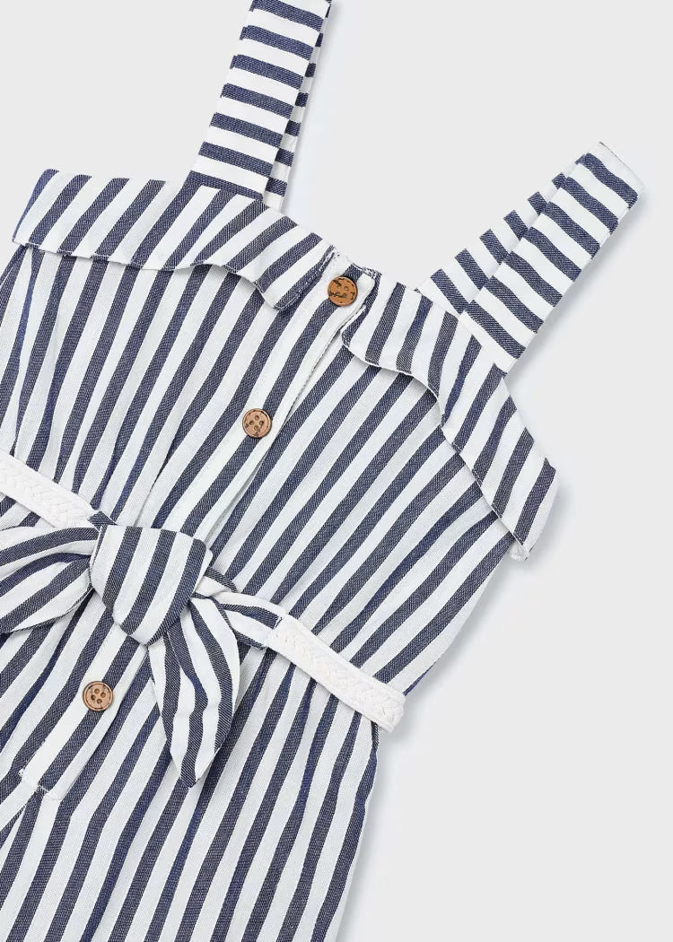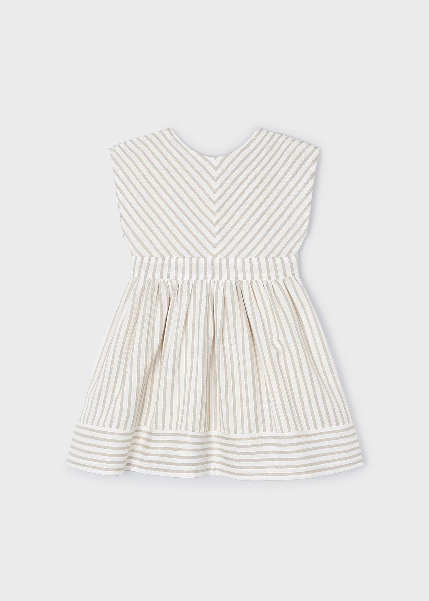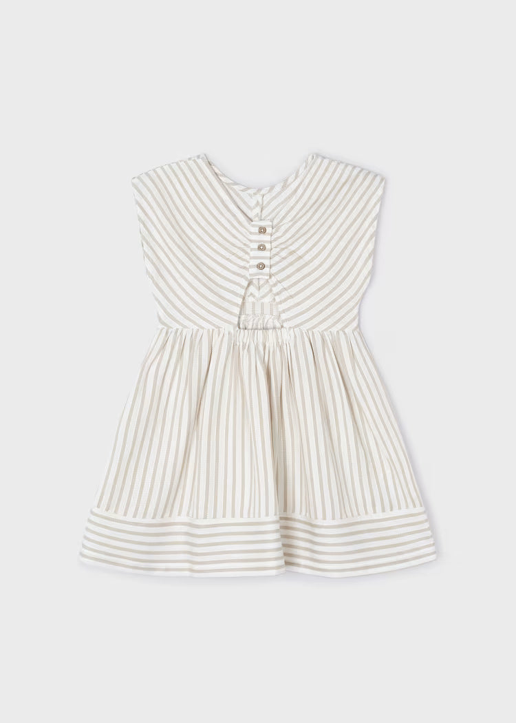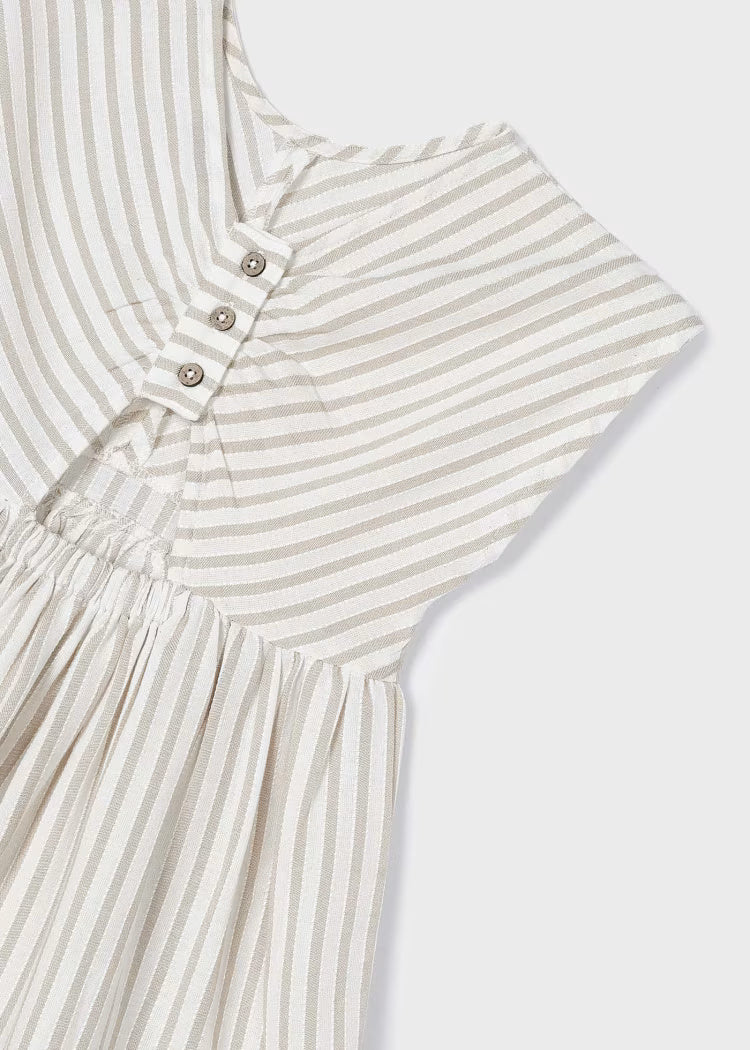 Mayoral girl's linen sleeveless dress with beige and green stripes