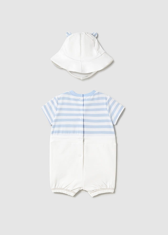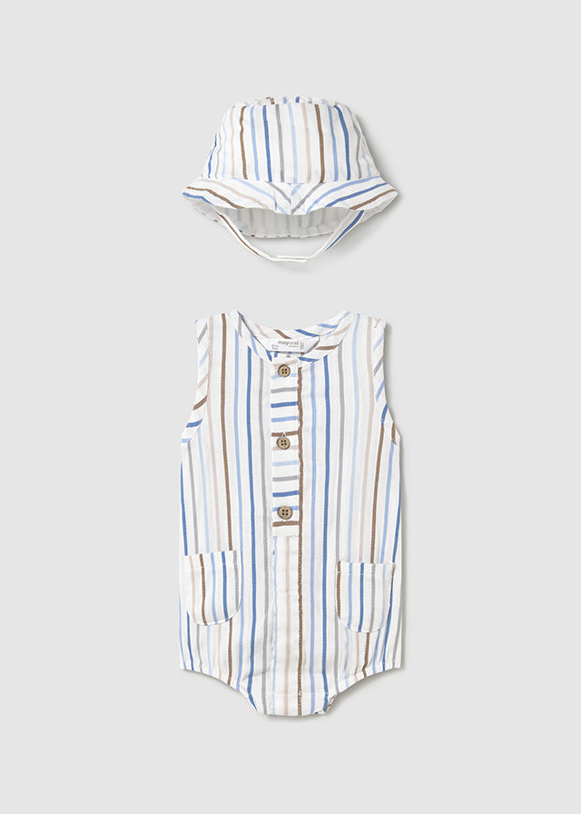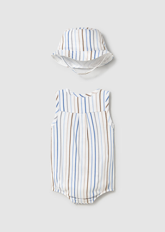 Pagliaccetto smanicato con cappello neonato Mayoral Newborn righe azzurre-beige