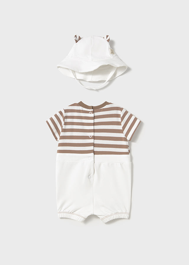 Pagliaccetto finta salopette con cappello neonato Mayoral Newborn Righe beige