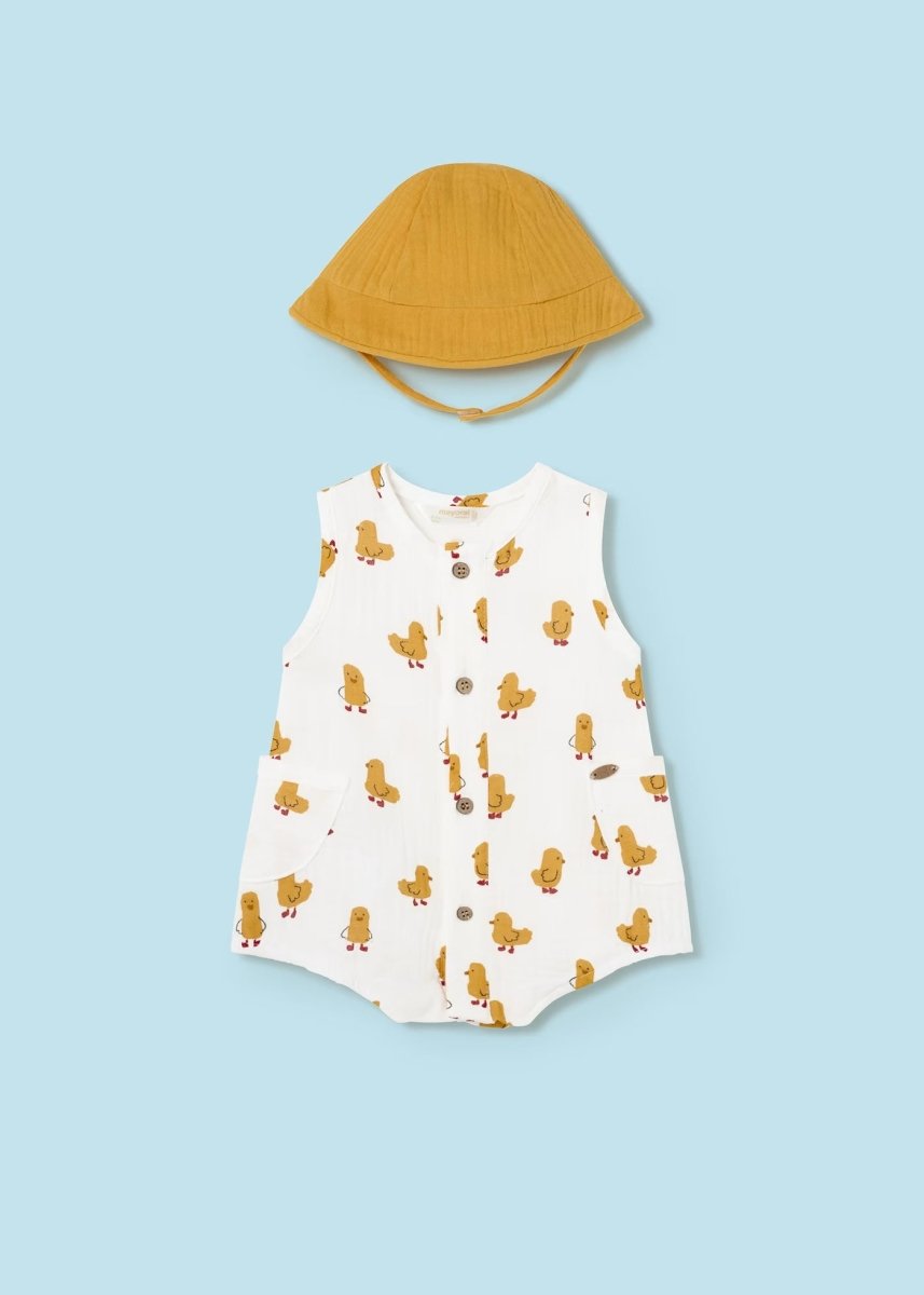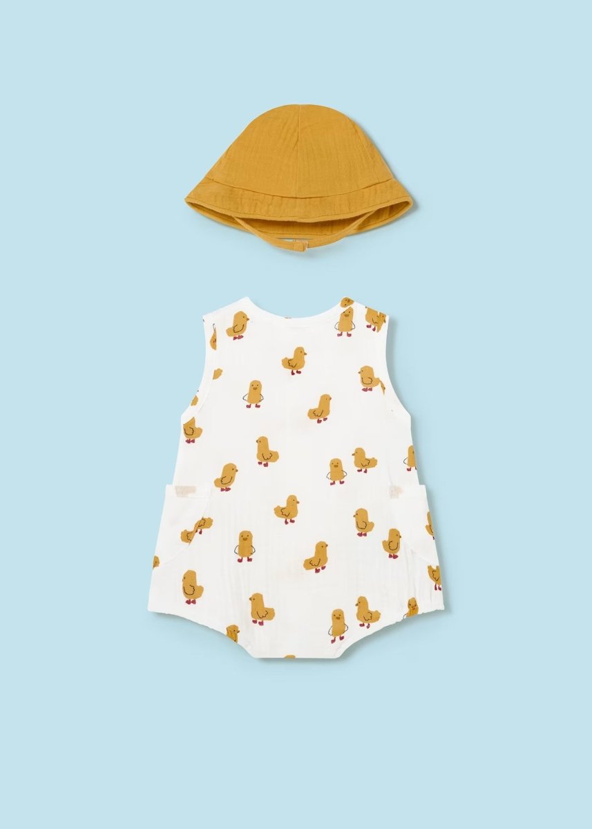 Mayoral Newborn Chick Print Romper with Hat