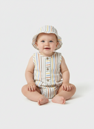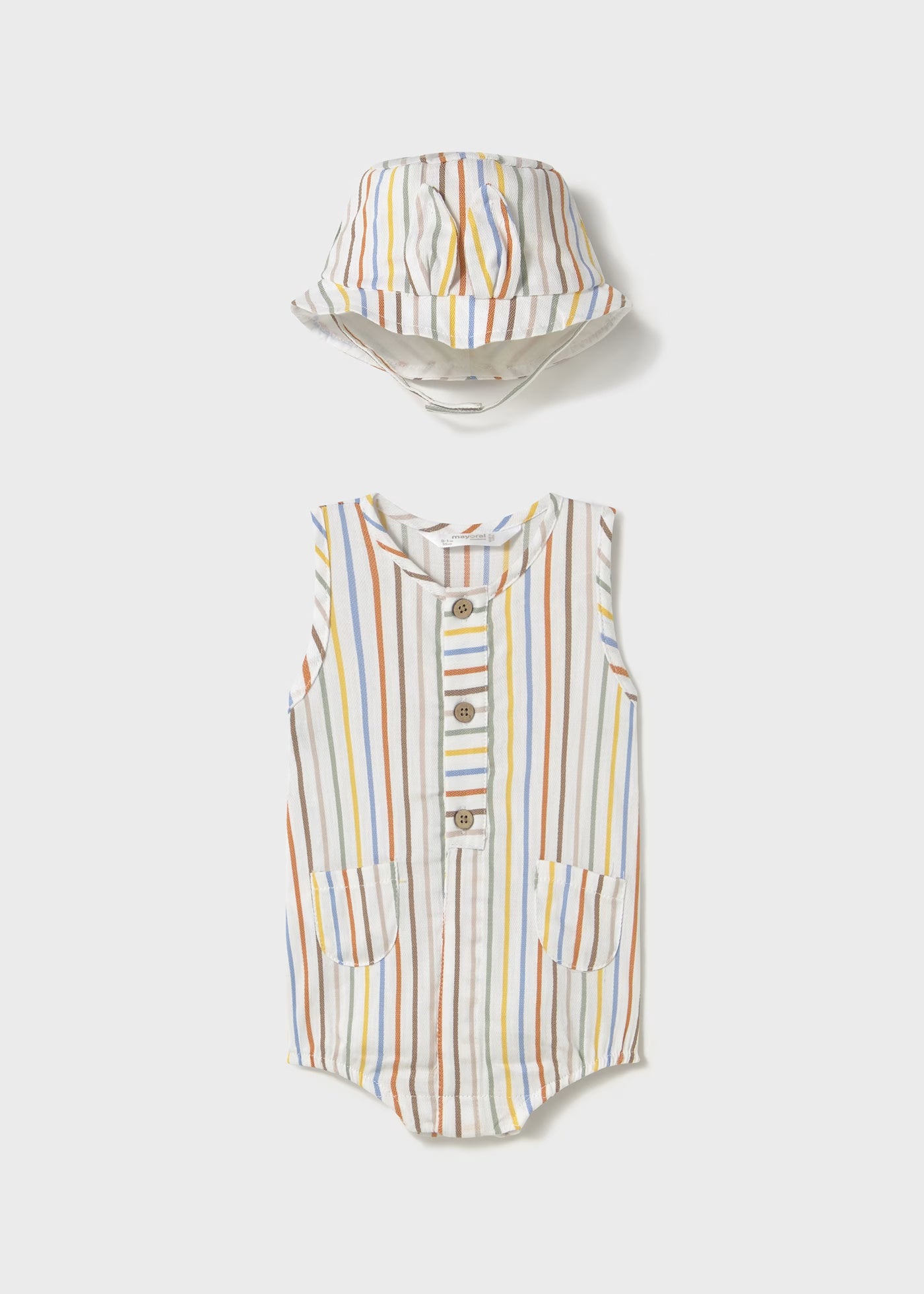 Pagliaccetto smanicato con cappello neonato Mayoral Newborn righe giallo-beige-arancio