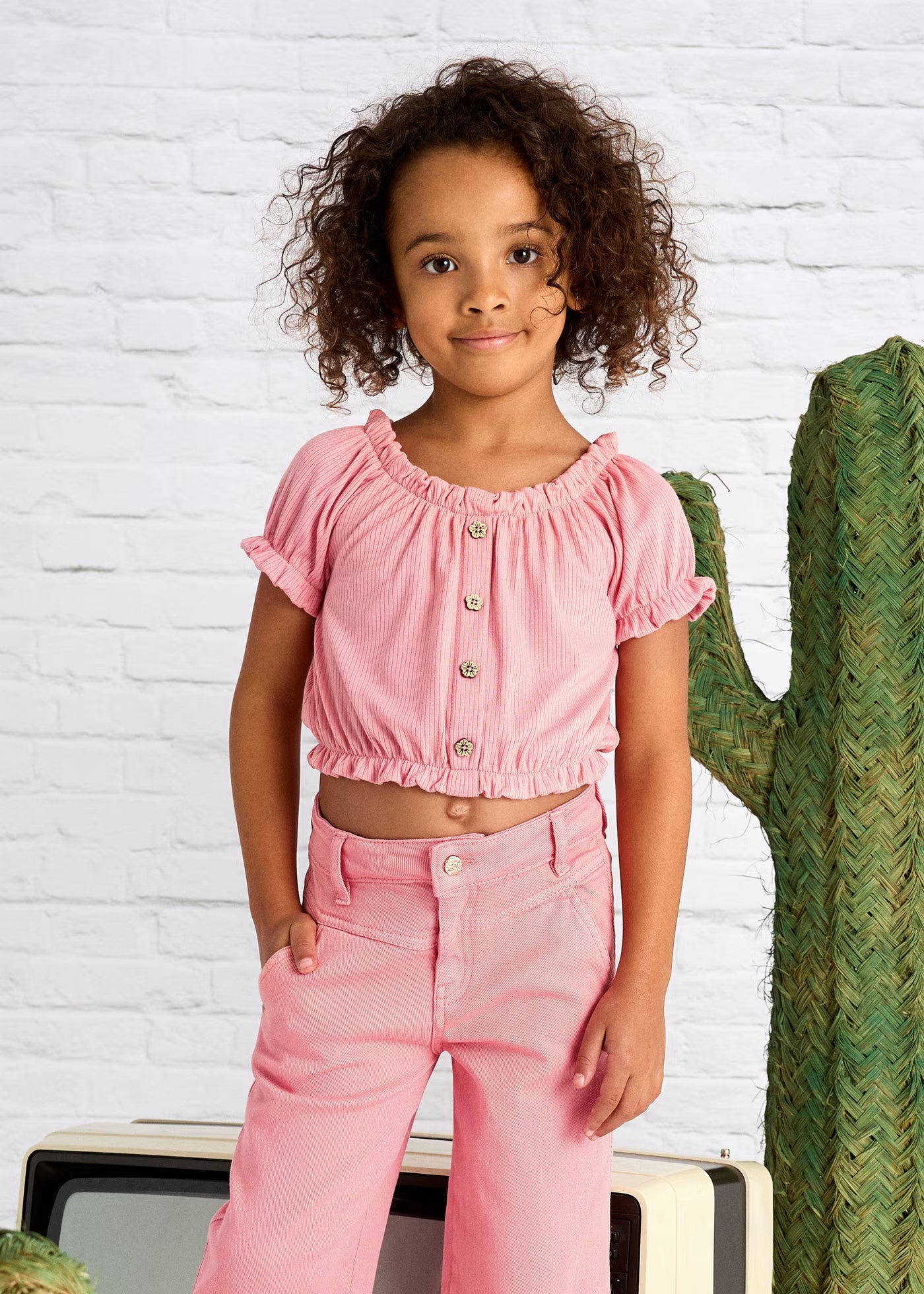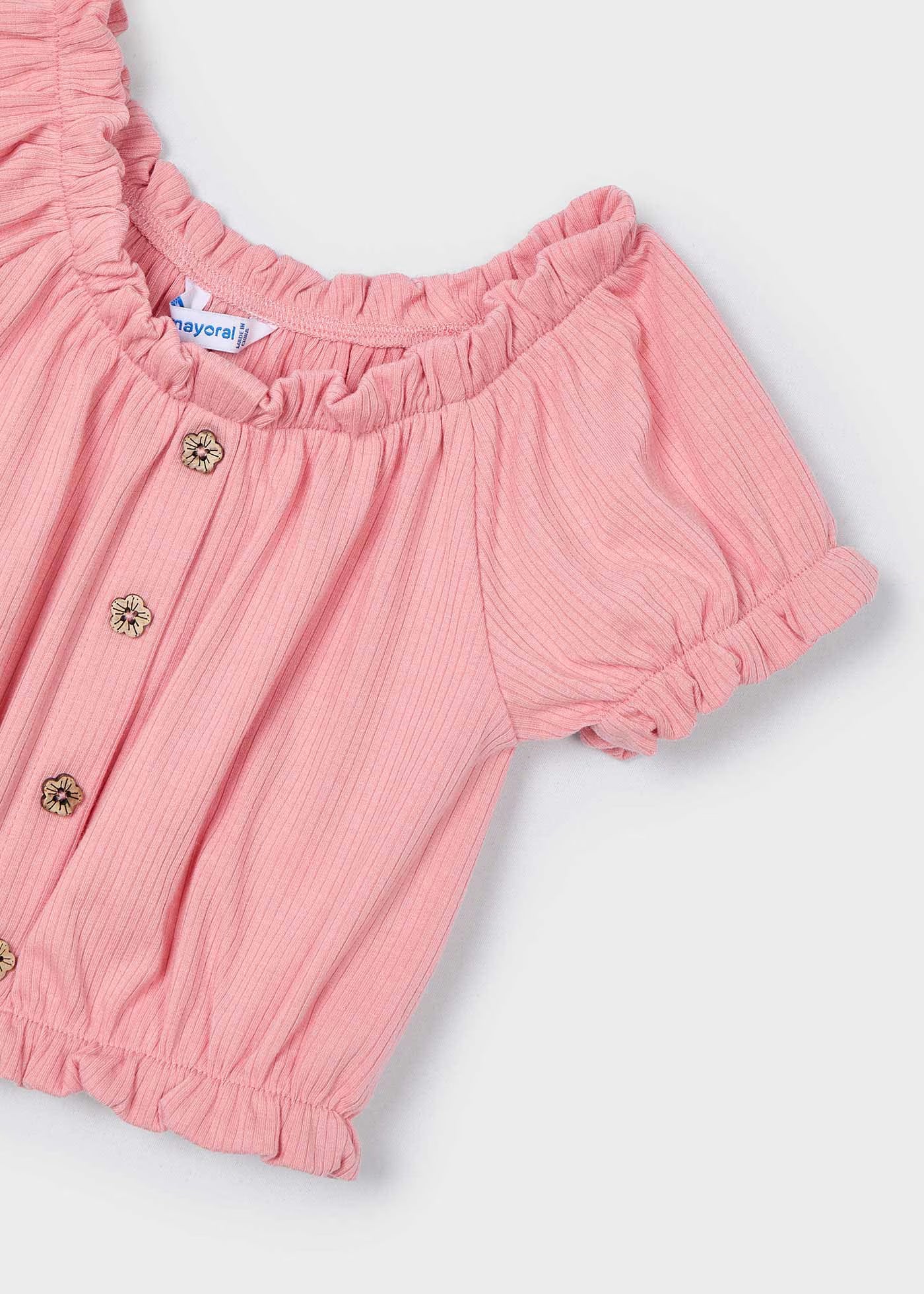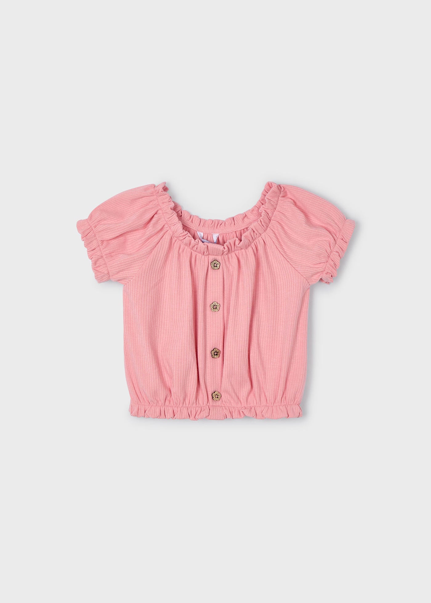 Maglietta corta a costine bambina Mayoral rosa salmone
