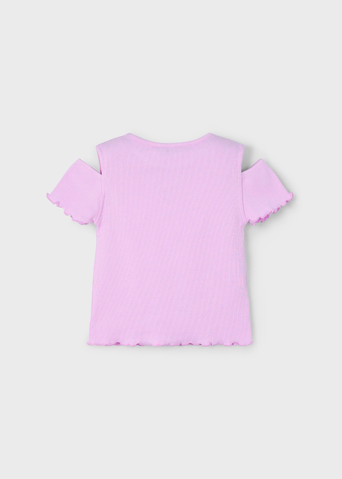 Maglietta manica corta per bambina. Design con apertura sulla schiena.