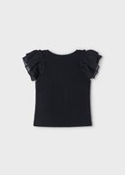 T-Shirt volant chiffon bambina Mayoral nero