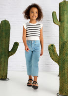 Top tricot costine bambina Mayoral bianca righe atrancite