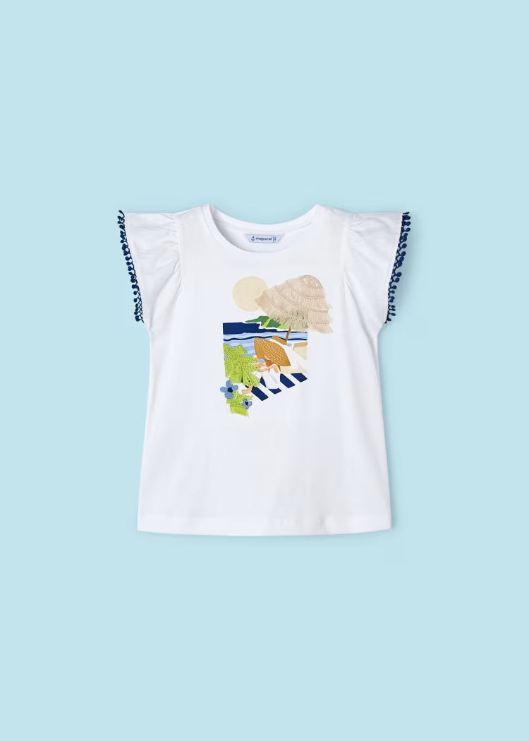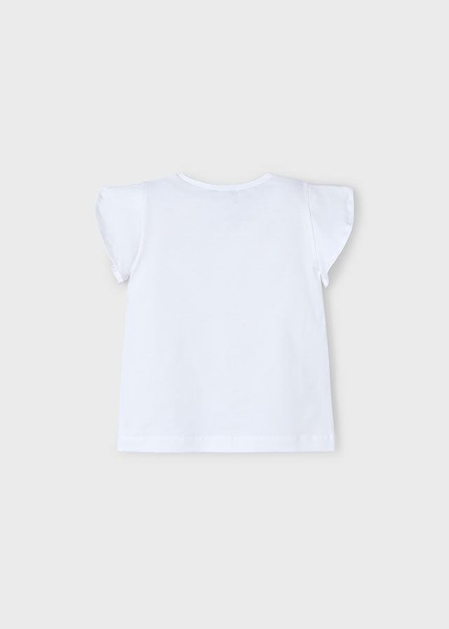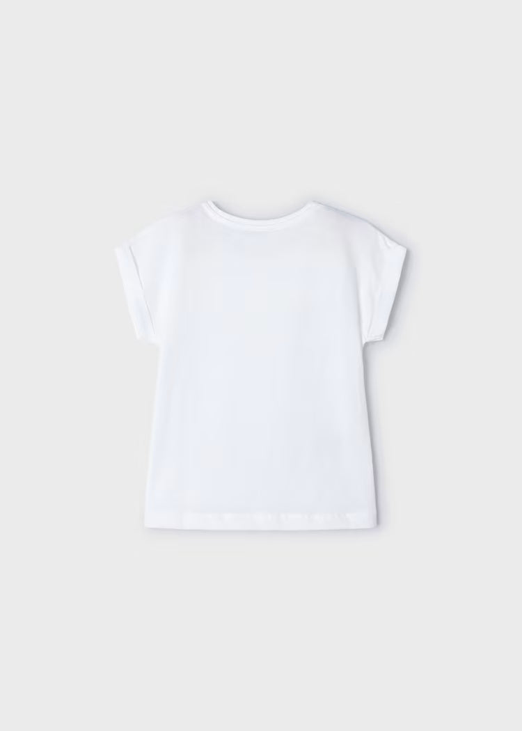 T-Shirt bambina Mayoral applicazini paillettes fiori panna