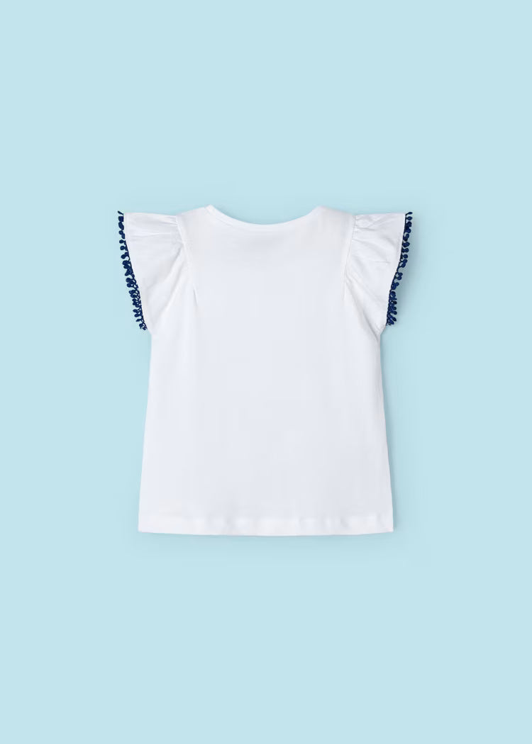T-Shirt bambina Mayoral fiore azzurro riliervo panna