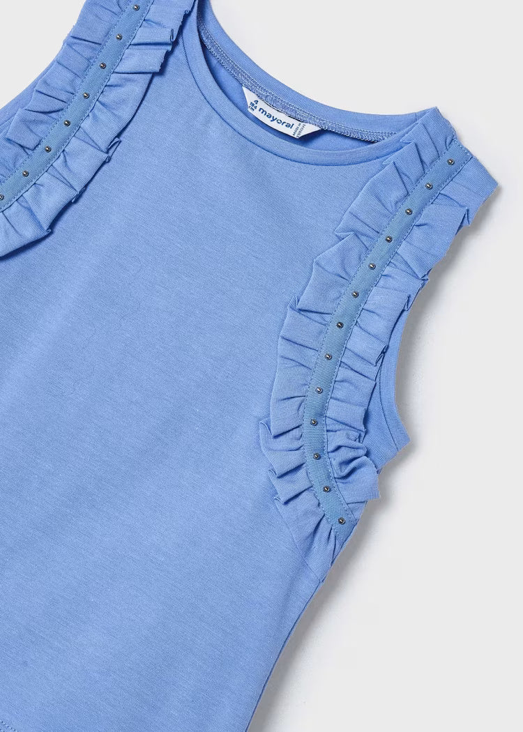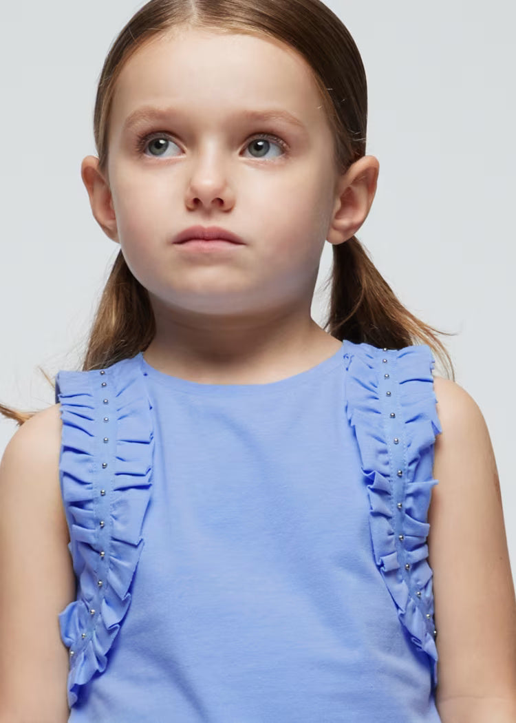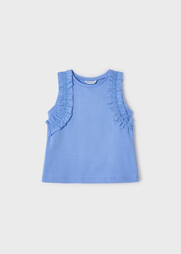 Mayoral Cream Fresh Cotton Perforated Sleeveless T-Shirt for Girls