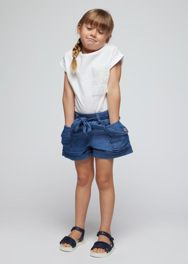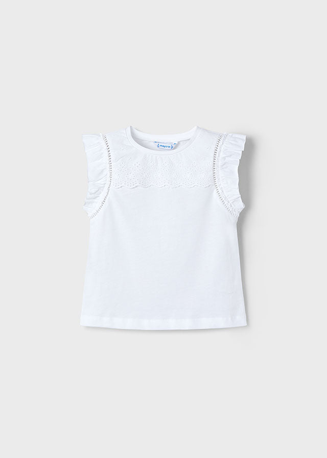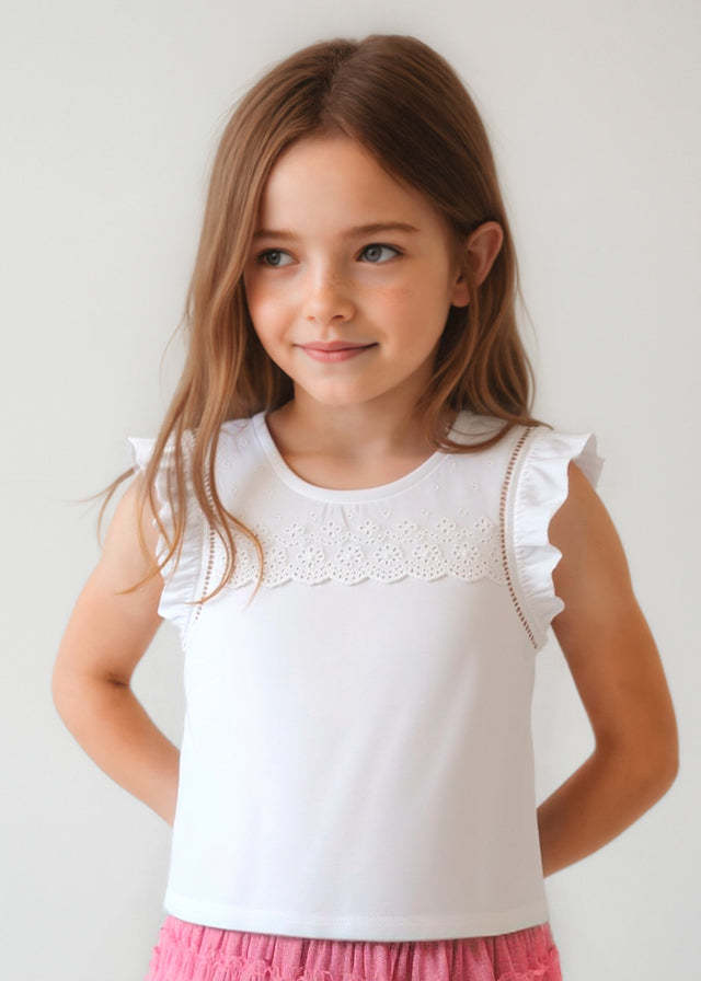 T-Shirt smanicata traforata bambina Mayoral bianca