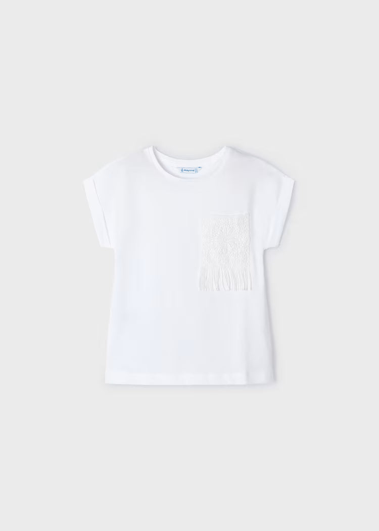 Mayoral Girl's White T-Shirt with Yellow Fringe