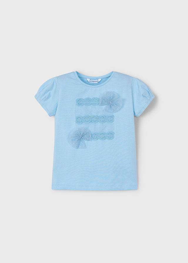 T-Shirt bambina Mayoral fiocchi plumetis azzurra cielo