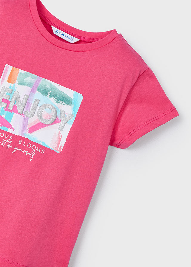 T-Shirt bambina Mayoral Stampa "ENJOY! rosa peonia