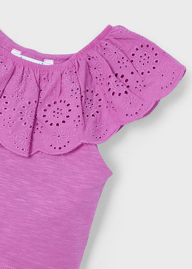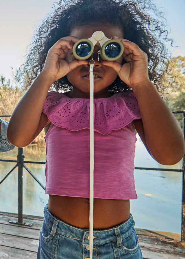 T-Shirt smanicata traforata bambina Mayoral rosa peonia