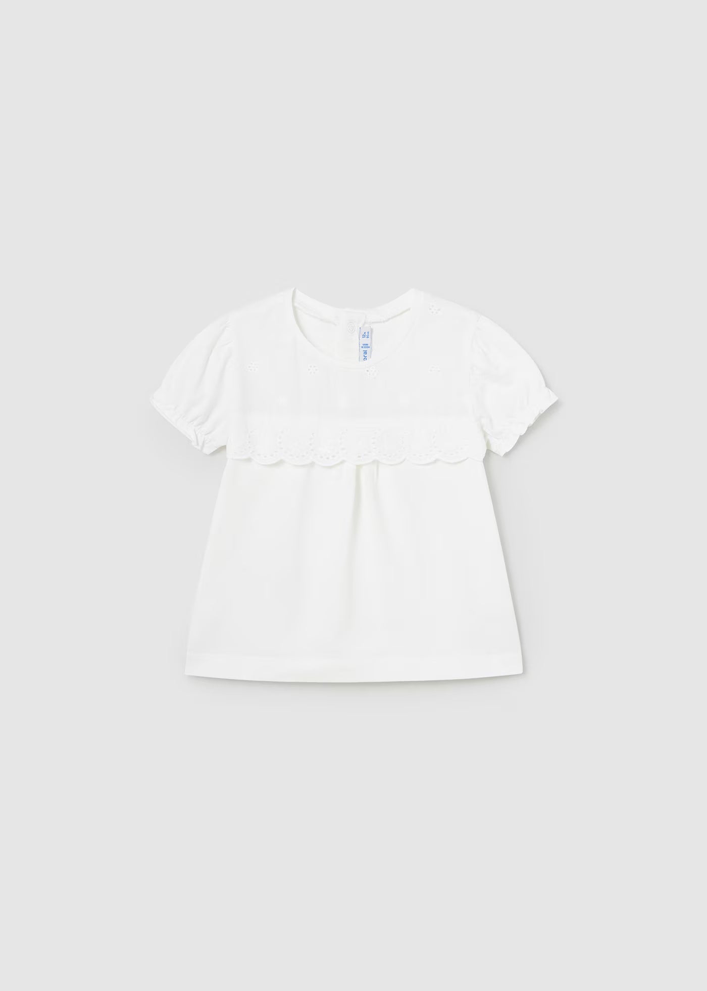 Mayoral white fresh cotton embroidered T-shirt for newborns