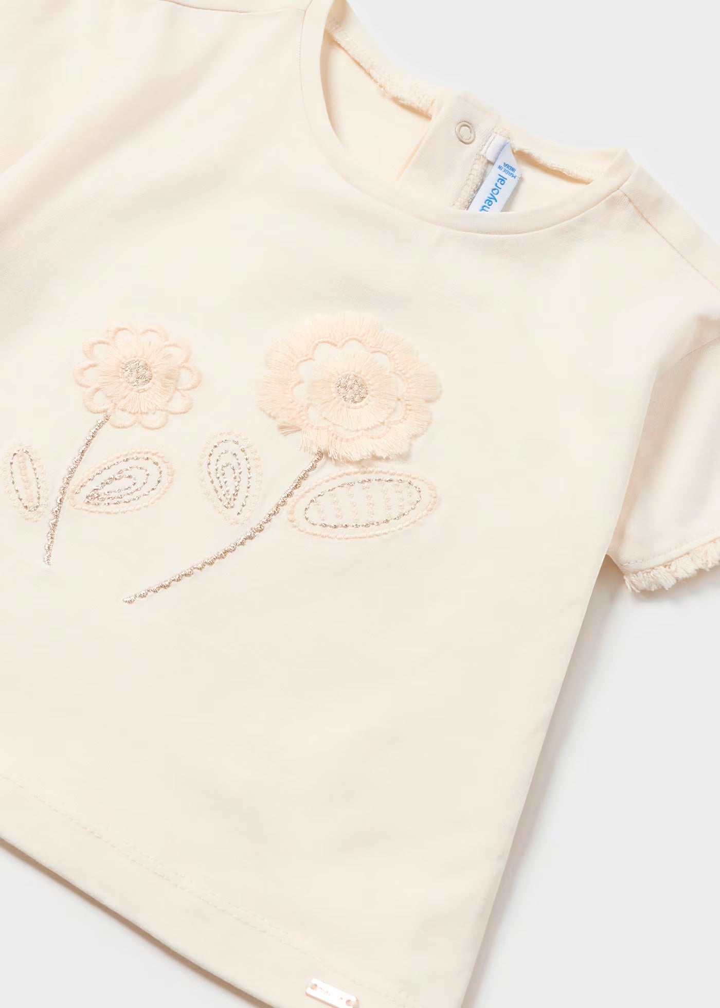 T-Shirt corta nodo neonata Mayoral applicazioni fiori