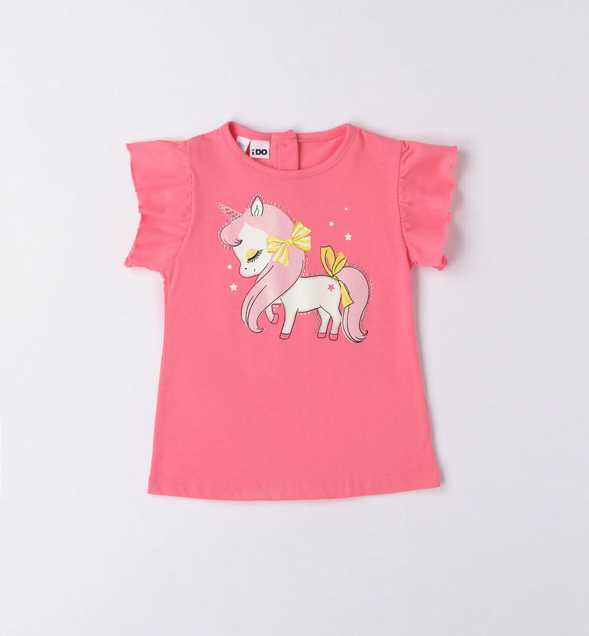 T-shirt fresco cotone bambina iDO "Unicorno" rosa