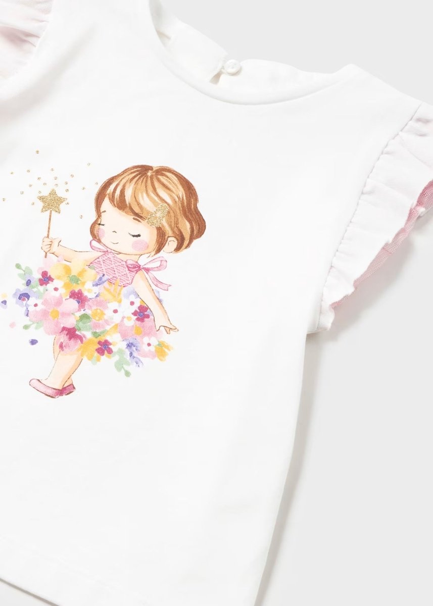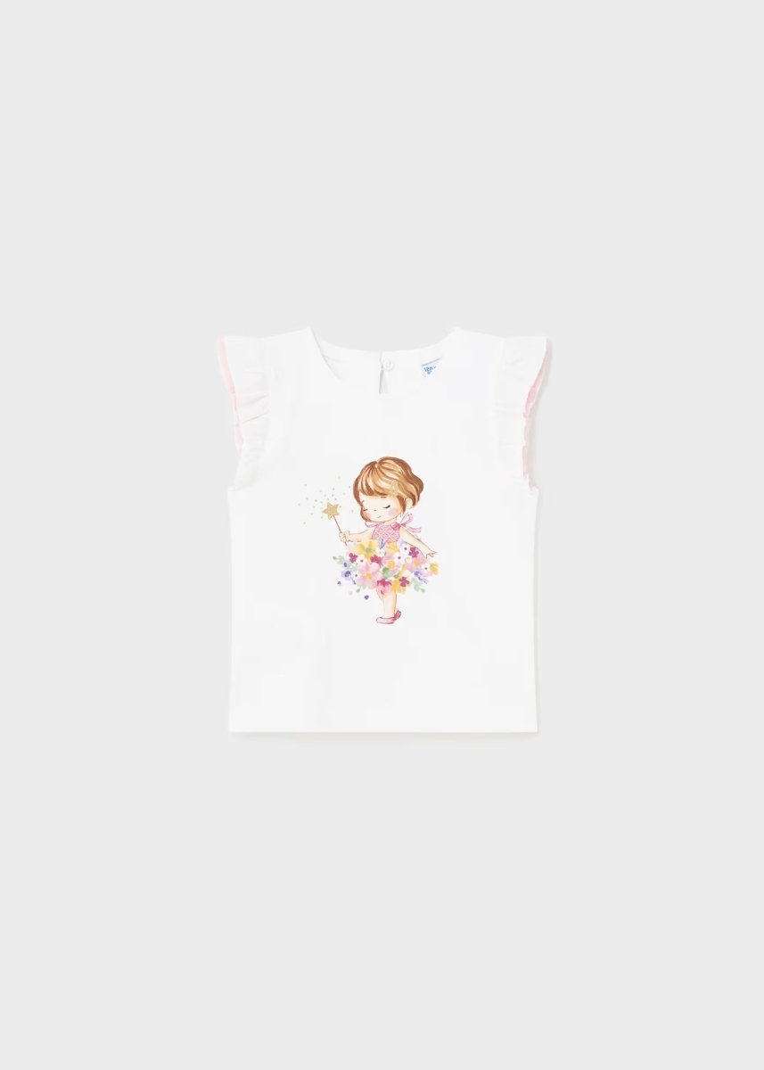 T-shirt bianca con manica volant neonata Mayoral "Ciliegie"