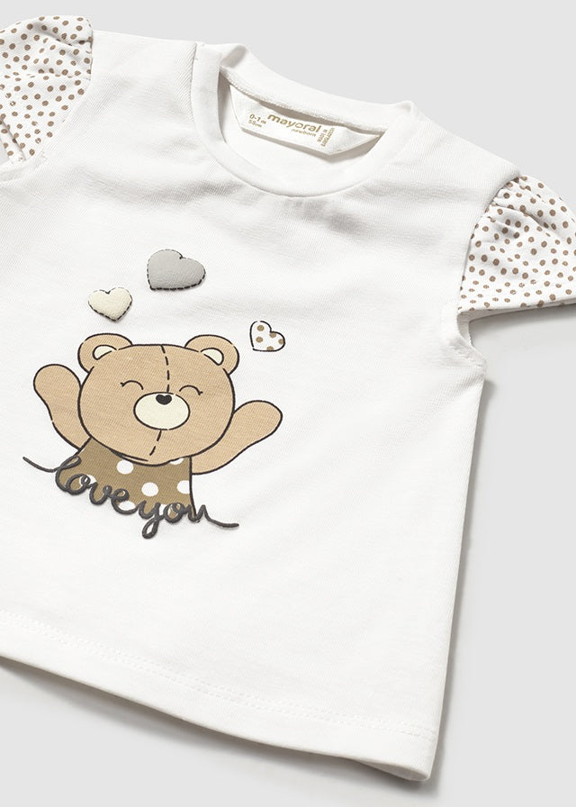 T-Shirt neonata Mayoral Newborn bianca orsetta beige