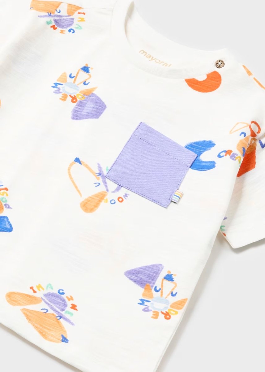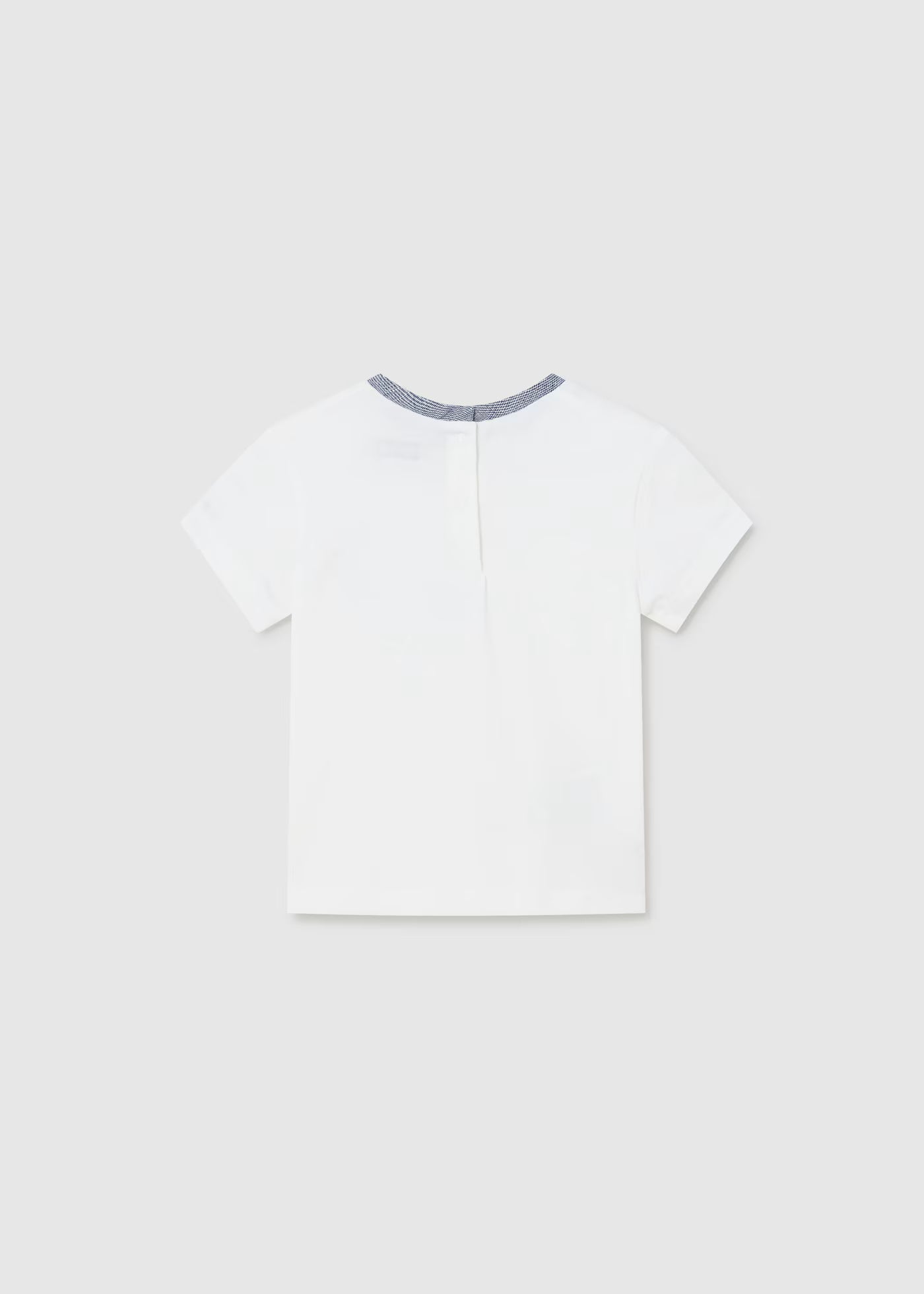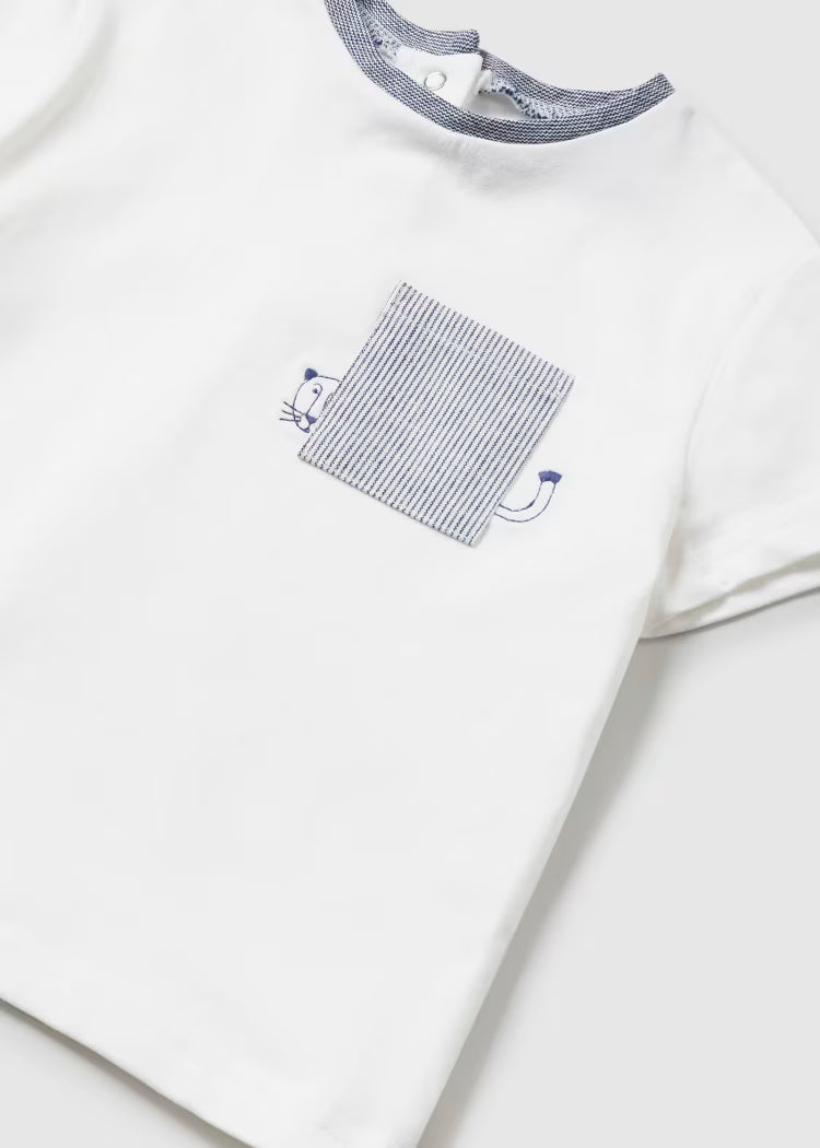 Mayoral Baby T-Shirt White with Contrast Pocket Beige