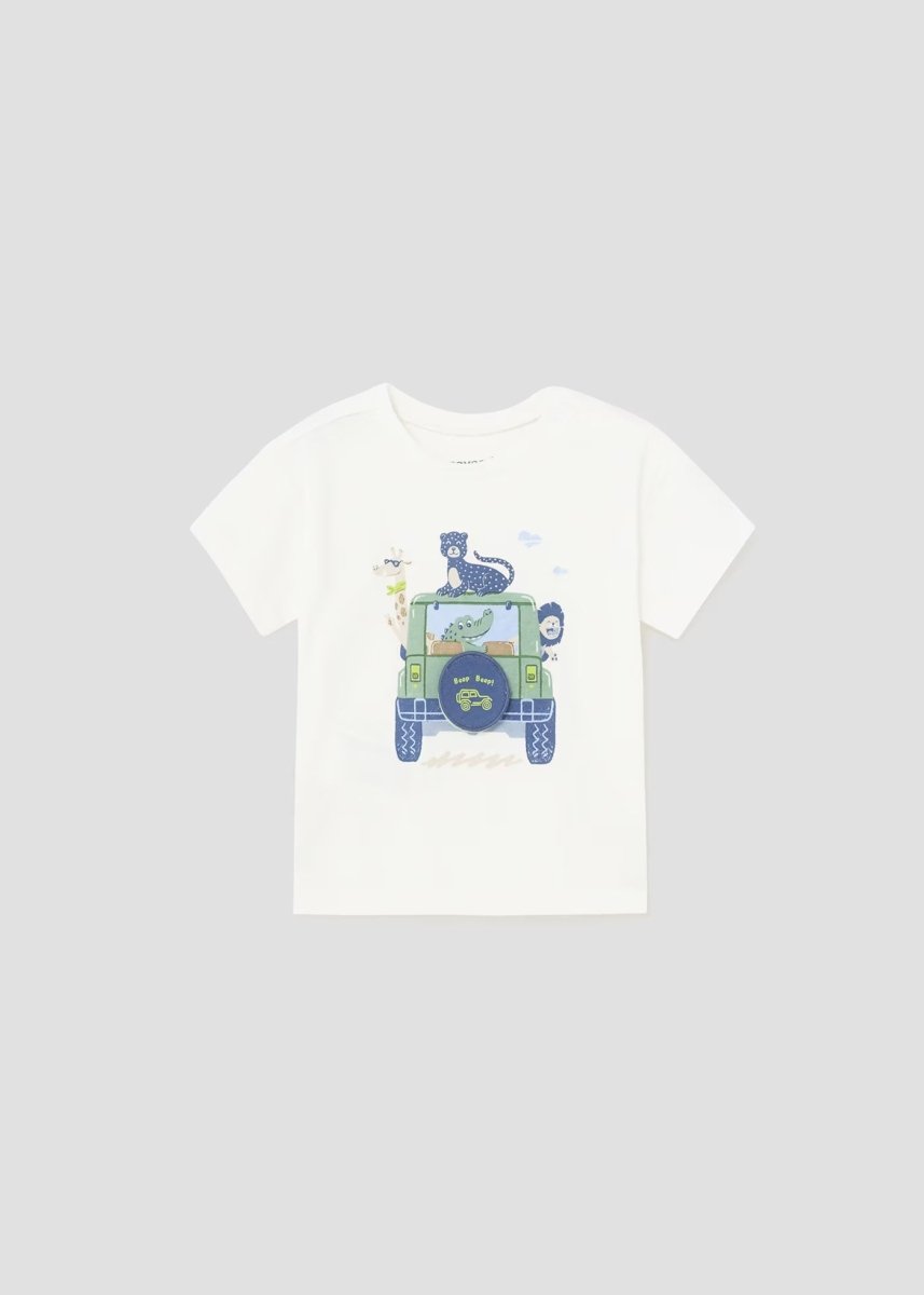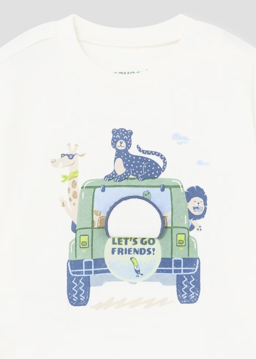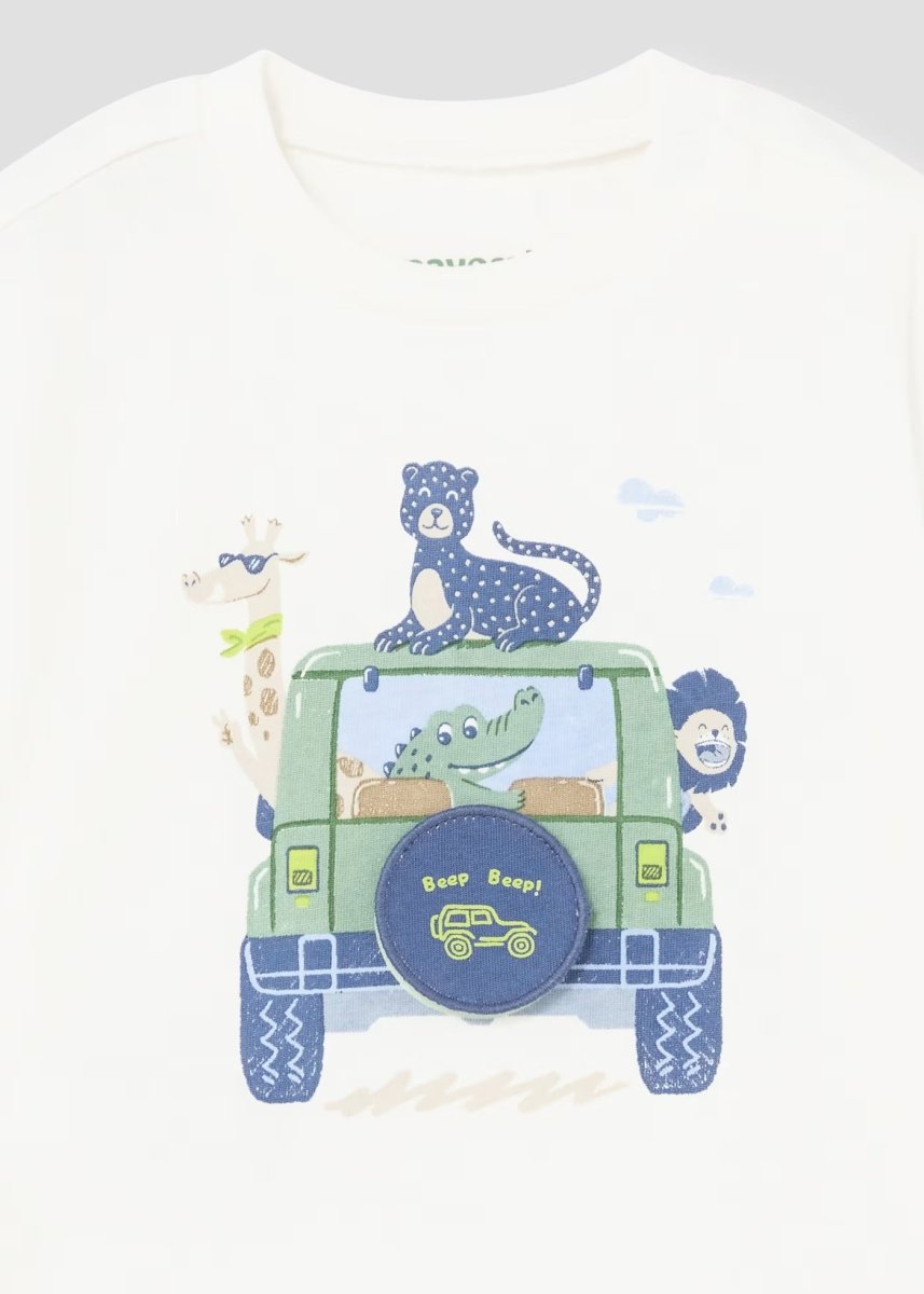 Mayoral "Beep Beep" white fresh cotton interactive T-Shirt for newborns