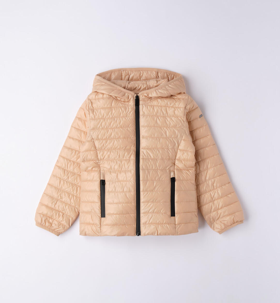 Giubbotto iDO per ragazza modello 100 grammi realizzato in nylon a tinta unita e imbottitura in ovatta. Il giubbotto è arricchito da cappuccio e apertura con zip