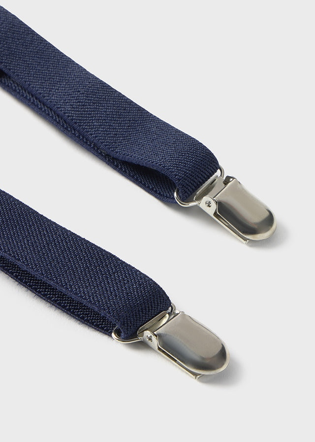 Bretelle elasticizzate regolabili per neonato che consentono una perfetta aderenza. Fissaggio con pinze in metallo
