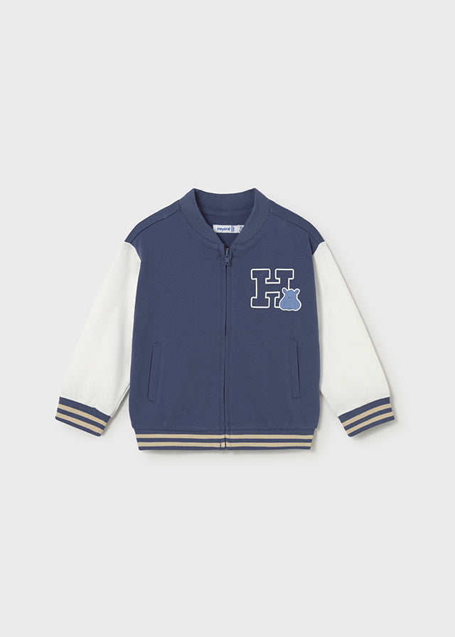 Felpa baseball modello bomber per neonato Mayoral, colore Blu oceano. Comoda e confortevole grazie alla composizione in poliestere e cotone.