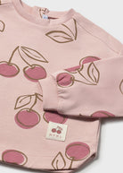 Pullover per neonata Mayoral con stampa ciliegie, colore Rosa. Morbido e confortevole grazie alla composizione in cotone con elastan.