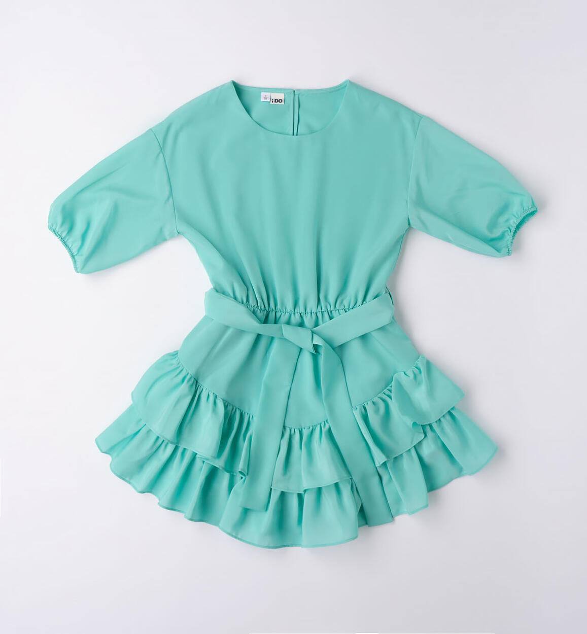 Abito a balze con cintura ragazza iDO tinta unita acqua