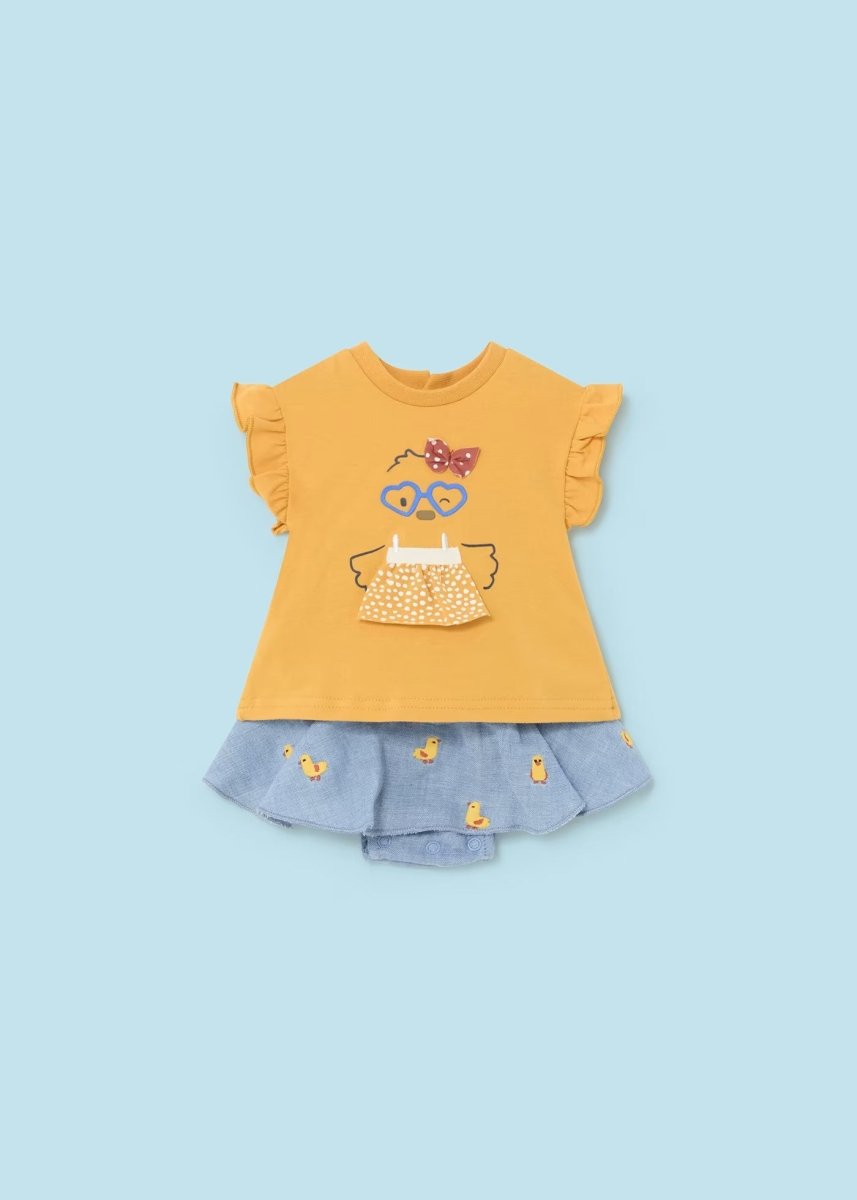 Completo 2 pezzi neonata Mayoral Newborn pantagonna Pulcini effetto