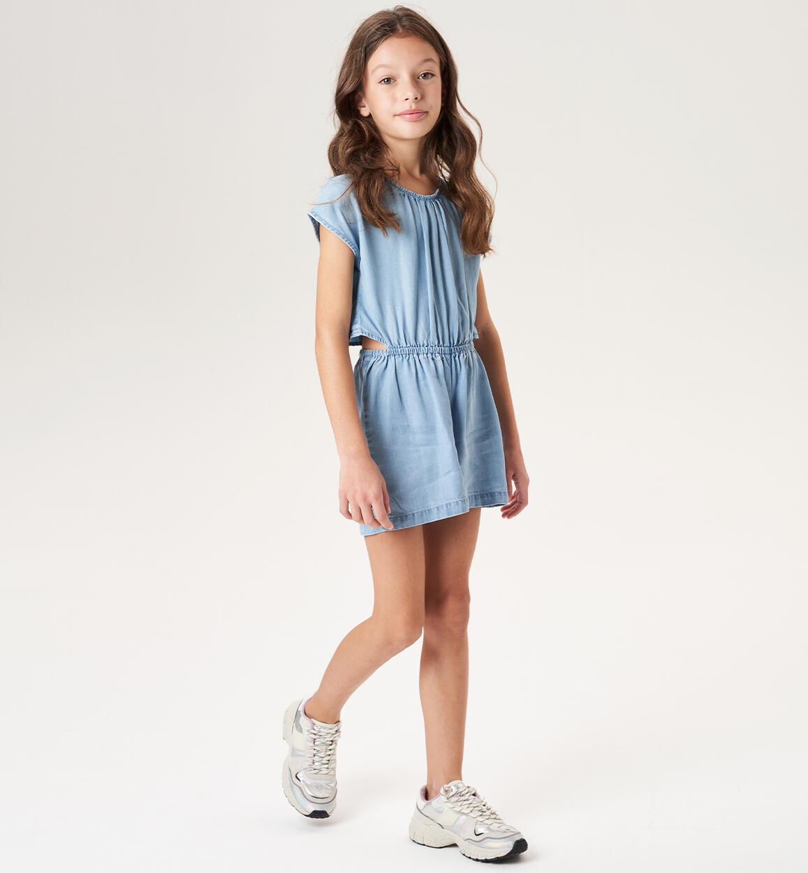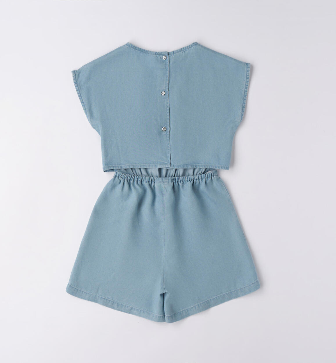 Completo iDO 100% lyocell smanicato con elastico in vita. Lunghezza al ginocchio, apertura dietro con bottoni. Effetto due pezzi